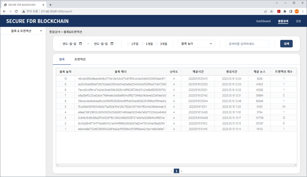 블록번호, 블록해시, 타임스탬프 등 관련 정보를 조회합니다.