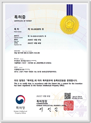파일 영구삭제 방법 및 컴퓨터 프로그램 특허 등록(10-2453870)